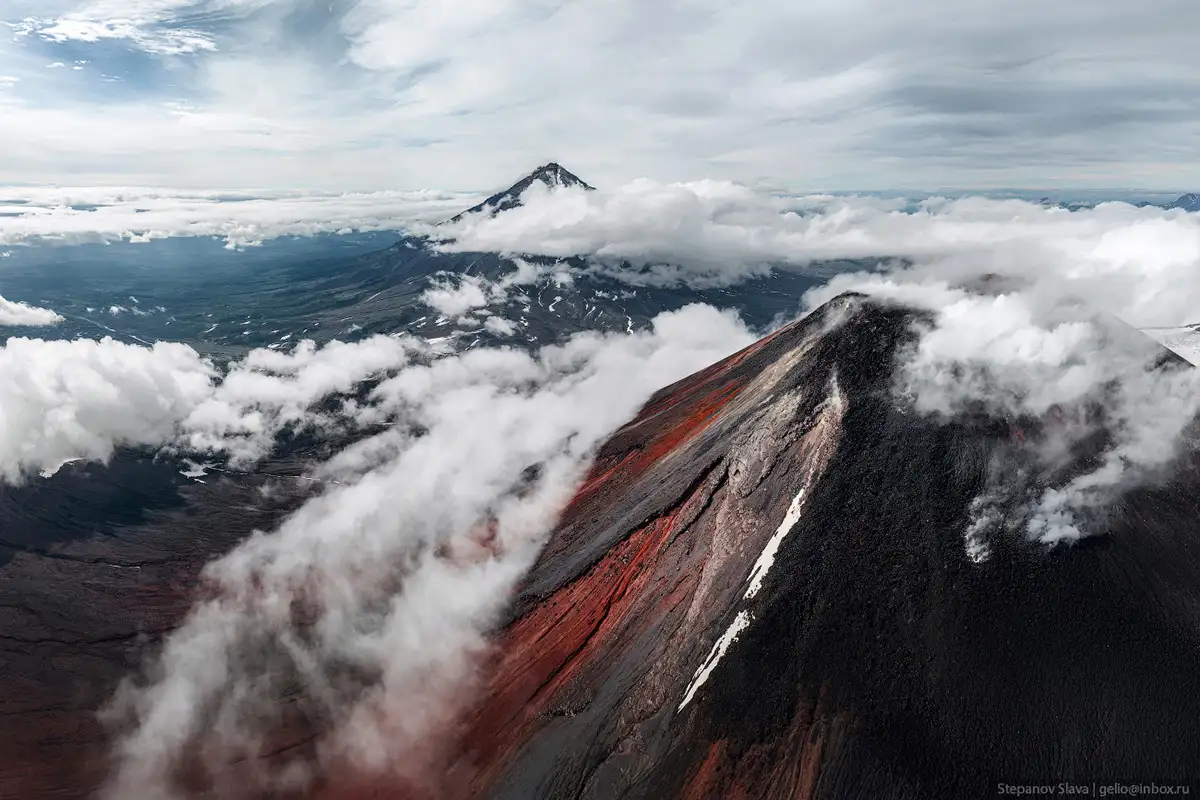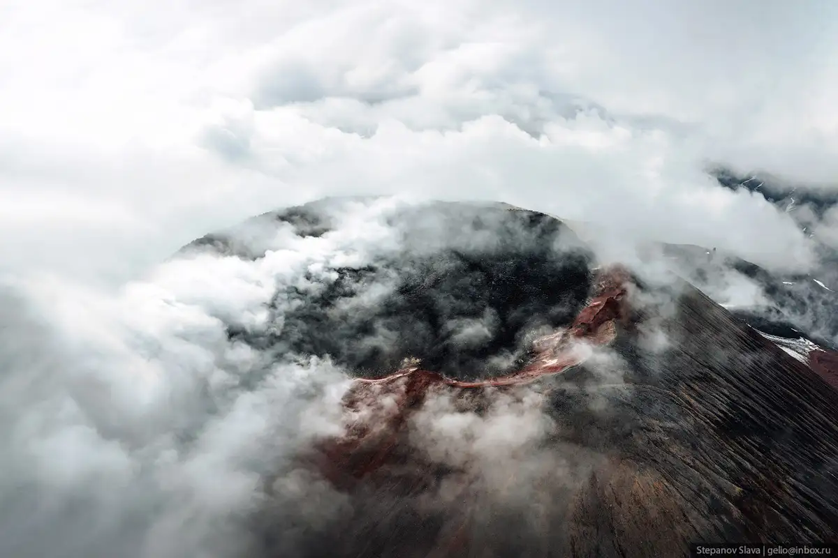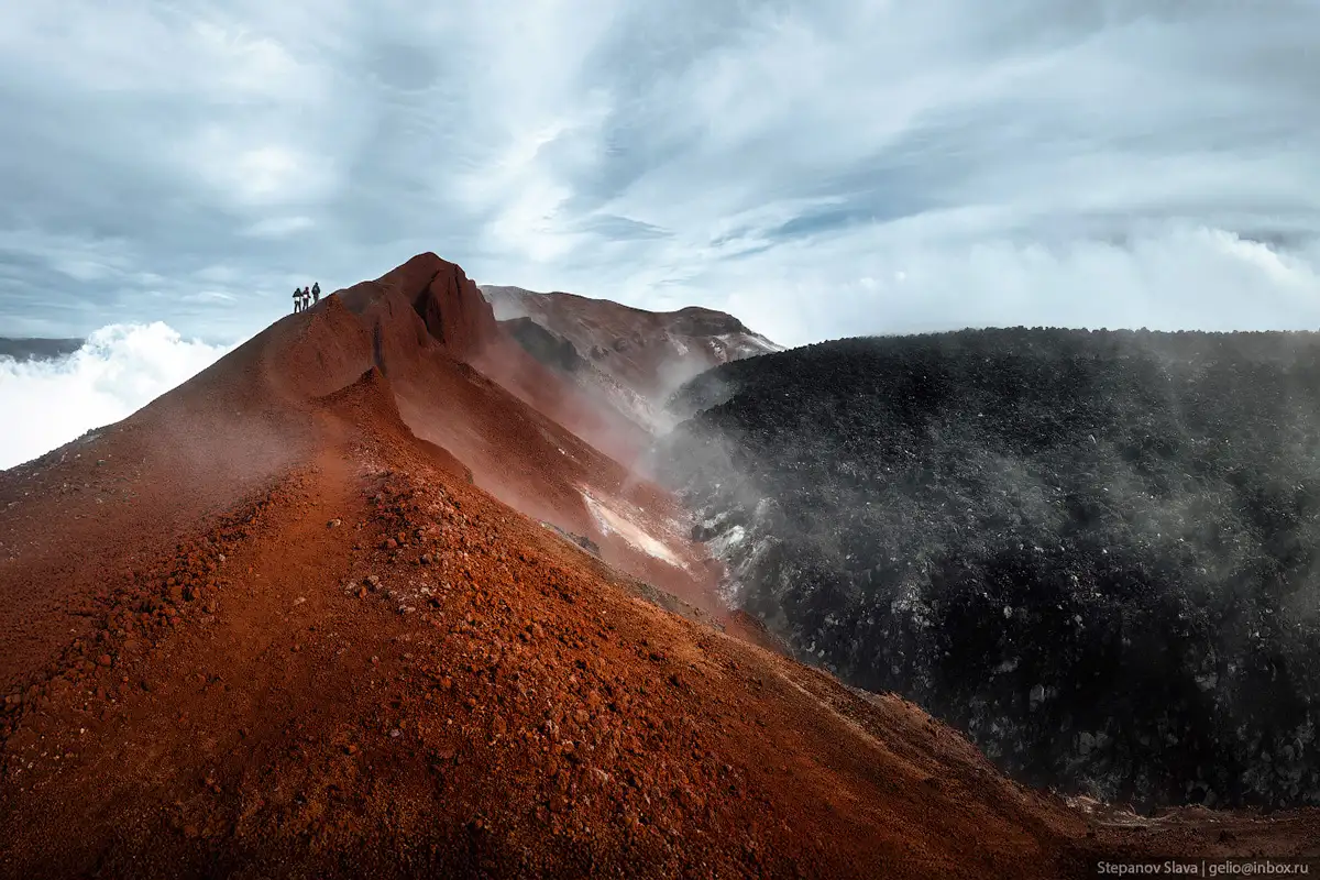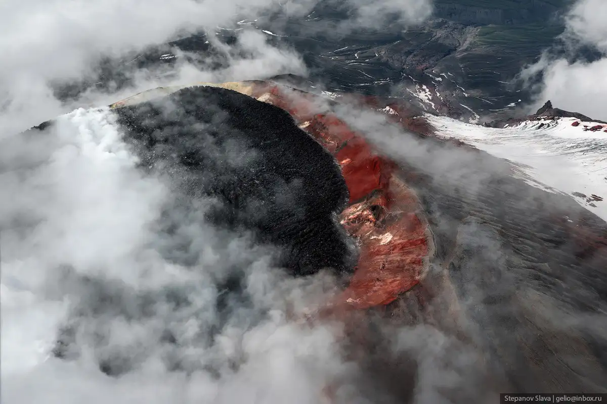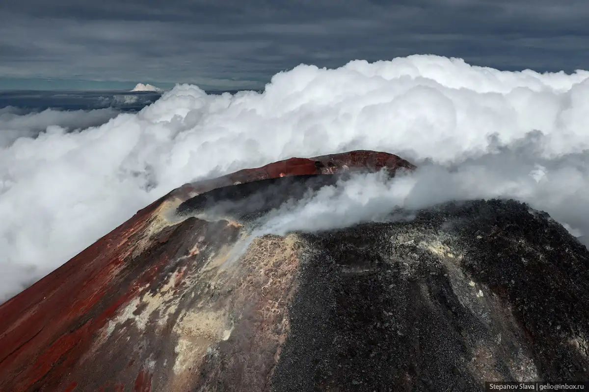 4. Извержение 1991 года длилось 2 недели. В то время был полный комплекс катастрофических процессов — пеплопад, селевой поток, сход лавы, выбросы загрязняющих веществ в атмосферу. Но масштабы были небольшими, поэтому жертв не было. При извержении в кратере образовалась лавовая пробка — сейчас она резко выделяется на фоне красноватых склонов вулкана.